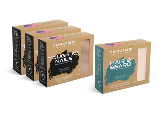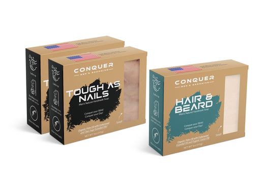 Save 20% with our Conquer Kits, which offer our Bar Soap with either our Hair & Beard Bar or GRIT Bar or Both!